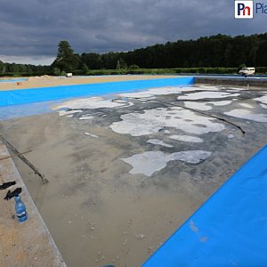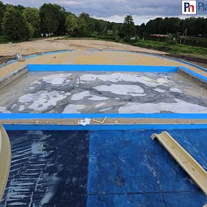 Otoczenie basenów wyłożono ok. 3 tys. metrów kwadratowych kostki. W ciągu najbliższych dni powstanie także plaża.