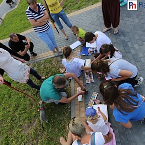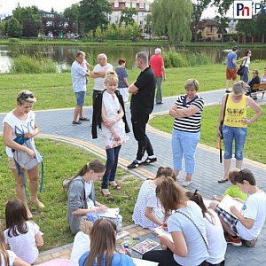 Rodzice malujących dzieci porozkładali kocyki, nad stawem porozstawiano sztalugi, niektórzy wybrali rysowanie na chodniku. Zarówno dorosłym jak i dzieciom pomocy w przygotowaniu prac mogą udzielić instruktorzy - plastycy. Organizatorzy zapewnili materiały plastyczne.