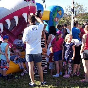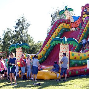 Od początku do końca imprezy długie kolejki nie topniały przed bezpłatnymi tego dnia nadmuchiwanymi zjeżdżalniami, trampolinami i labiryntami. Ogromną popularnością cieszył się też... policyjny radiowóz. Mundurowi pozwalali dzieciom na wsiadanie do wnętrza, uruchamianie sygnałów dźwiękowych i świetlnych oraz korzystanie z zewnętrznych głośników. "Mamo, kup mi loda!" - nawoływała przez radio kilkulatka.Maluchy chętnie wdrapywały się też do szoferki wozu strażackiego, ubierały się w kamizelki straży miejskiej i spacerowały ze służbową pałką. Z kolei Wodne Ochotnicze Pogotowie Ratunkowe uczyło chętnych udzielania pierwszej pomocy. Popularne był też tor przeszkód przygotowany przez karateków, strzelnica paintballa oraz zajęcia przygotowane przez animatorów z Ośrodka Kultury. Każdy mógł własnoręcznie wykonać z balonika i mąki ziemniaczanej tzw. zgniotkę lub zająć się rysowaniem. Przygotowani też loterię.Pięć godzin upłynęło także pod znakiem turniejów sportowych oraz pokazów sztuk walki. Wyjątkowo dużą publiczność przyciągnęli cyrkowcy-akrobaci. Klaun zabawiał publiczność, ale i zachęcał ją do wspólnego tańca, m.in. z Prosiaczkiem ze Stumilowego Lasu.
