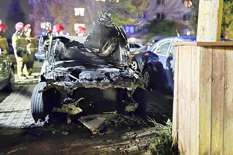 PIASECZNO Do pożaru samochodu marki BMW doszło przy ul. Kniaziewicza ok. godz. 21