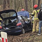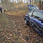 Do niebezpiecznej kolizji doszło na łuku drogi 873 w Pilawie. Kobieta jadąca peugeotem na łuku drogi wypadła z jezdni