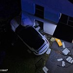 LESZNOWOLA Kobieta narodowości ukraińskiej na ul. Króla Maciusia niespodziewanie straciła kontrolę nad pojazdem, uderzyła w zaparkowane auto, a następnie wjechała w dom.