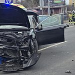 Po godzinie 14 doszło do wypadku na skrzyżowaniu al. Krakowskiej z ul. Komornicką. Zderzyły się trzy samochody.
