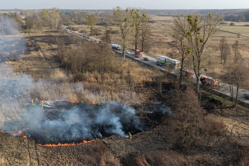 GÓRA KALWARIA Do pożaru nieużytków rolnych doszło przy drodze krajowej nr 79 w miejscowości Solec. Na miejscu działania gaśniczo-ratownicze prowadzą strażacy.