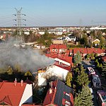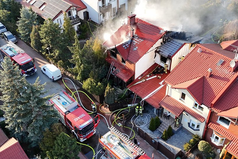 LESZNOWOLA Groźny pożar wybuchł na jednym z osiedli w Nowej Iwicznej. Ogień objął budynek w zabudowie bliźniaczej. Na szczęście w chwili zdarzenia w domu nie było mieszkańców, dzięki czemu nikt nie odniósł obrażeń.