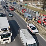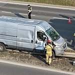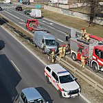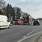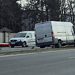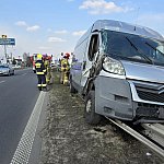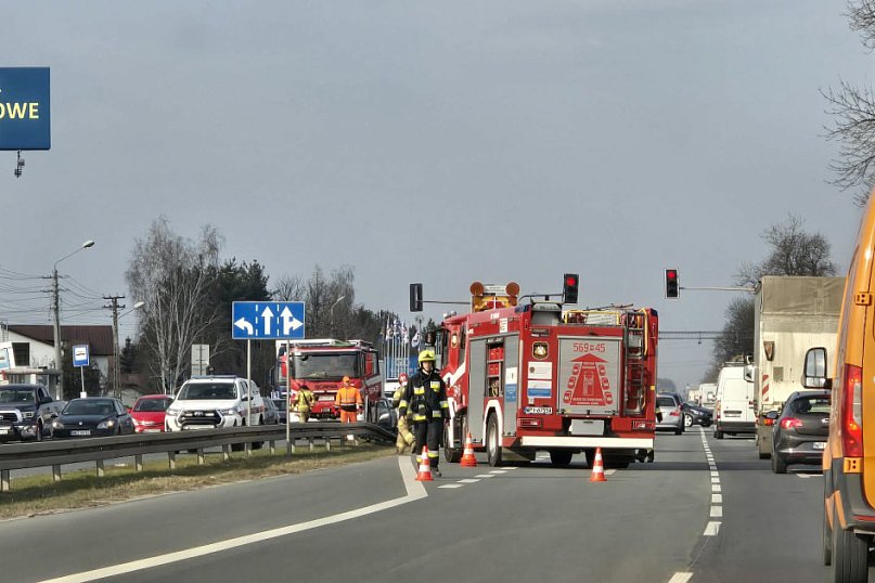 LESZNOWOLA Do niebezpiecznej kolizji doszło na al. Krakowskiej w Jabłonowie, za skrzyżowaniem z ulicą Nadrzeczną. Samochód dostawczy uderzył w tył ciężarówki.