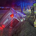 PIASECZNO Do kolizji doszło na ul. Leźnej w Bobrowcu. Mężczyzna jadący volkswagenem polo podczas manewru wyprzedzania stracił panowanie nad pojazdem i dachował w przydrożnym rowie