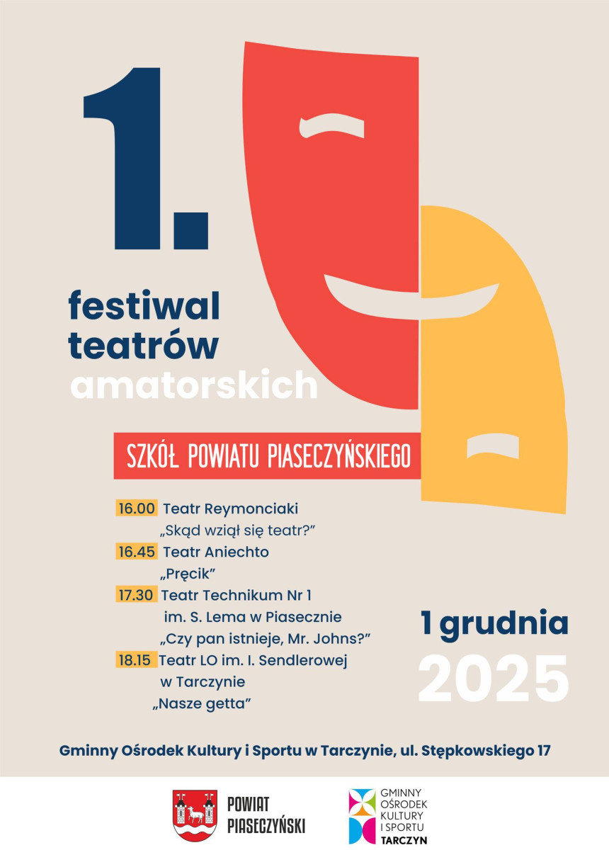 Festiwal odbędzie się w Gminnym Ośrodku Kultury i Sportu w Tarczynie, przy ul. Stępkowskiego 17. Organizatorzy zapraszają wszystkich, którzy chcą zanurzyć się w świat młodego teatru i wspierać lokalnych twórców.
