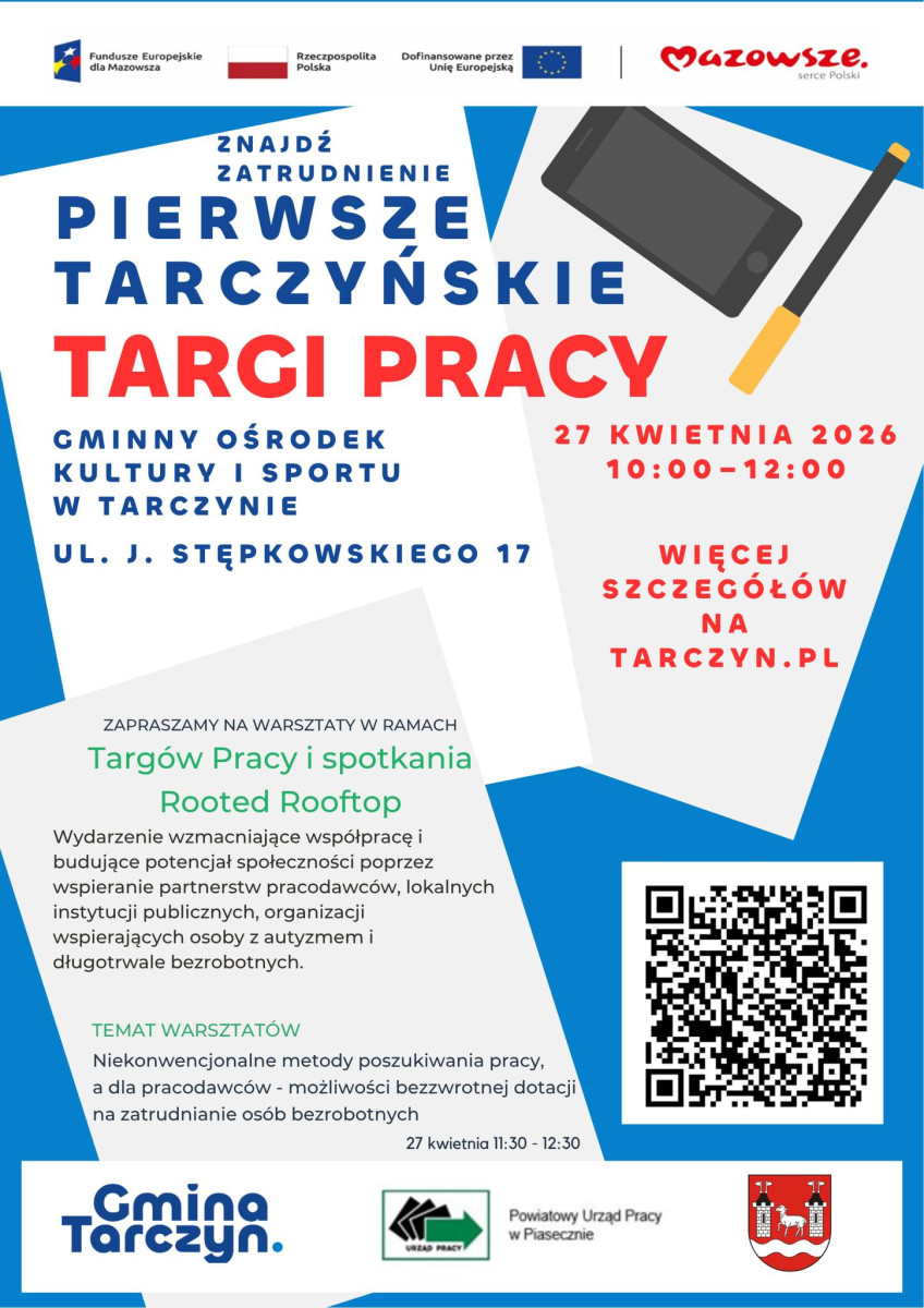 Do udziału w pierwszych Tarczyńskich Targach Pracy zaproszeni są wszyscy zainteresowani mieszkańcy gminy i okolic. Wstęp na wydarzenie jest otwarty.