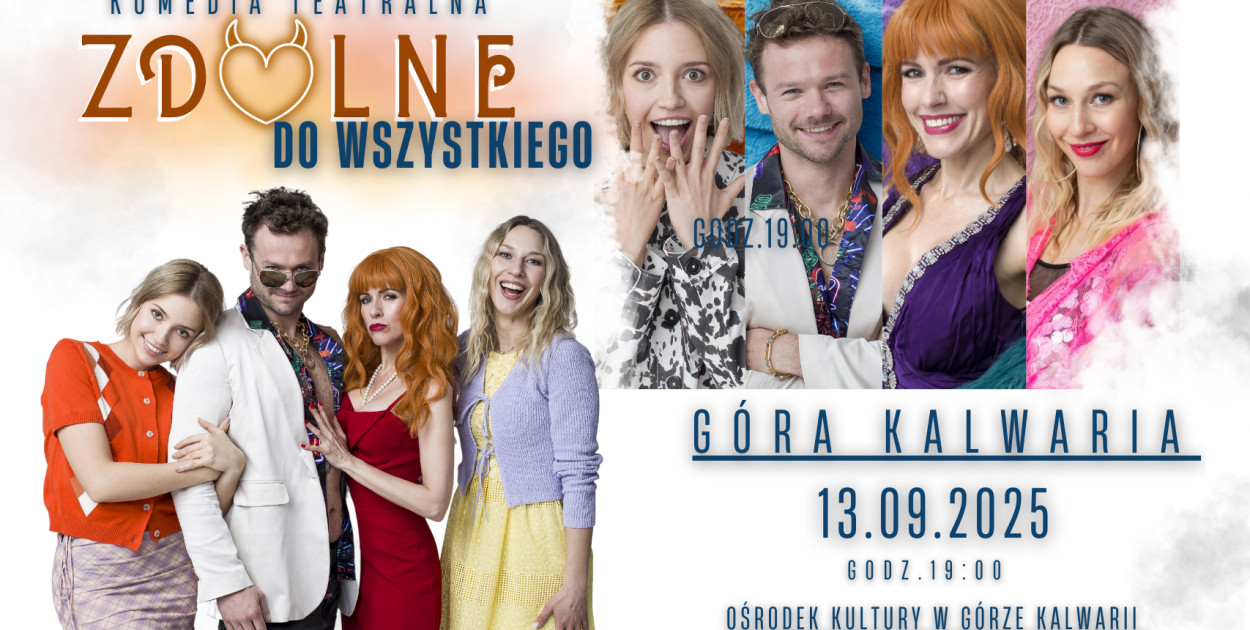 Już 13 września 2025 roku o godz. 19:00 w Ośrodku Kultury w Górze Kalwarii (ul. por. Jana Białka 9) publiczność będzie mogła obejrzeć pełną humoru i nieoczekiwanych zwrotów akcji komedię „Zdolne do Wszystkiego” autorstwa Marka Pitucha.