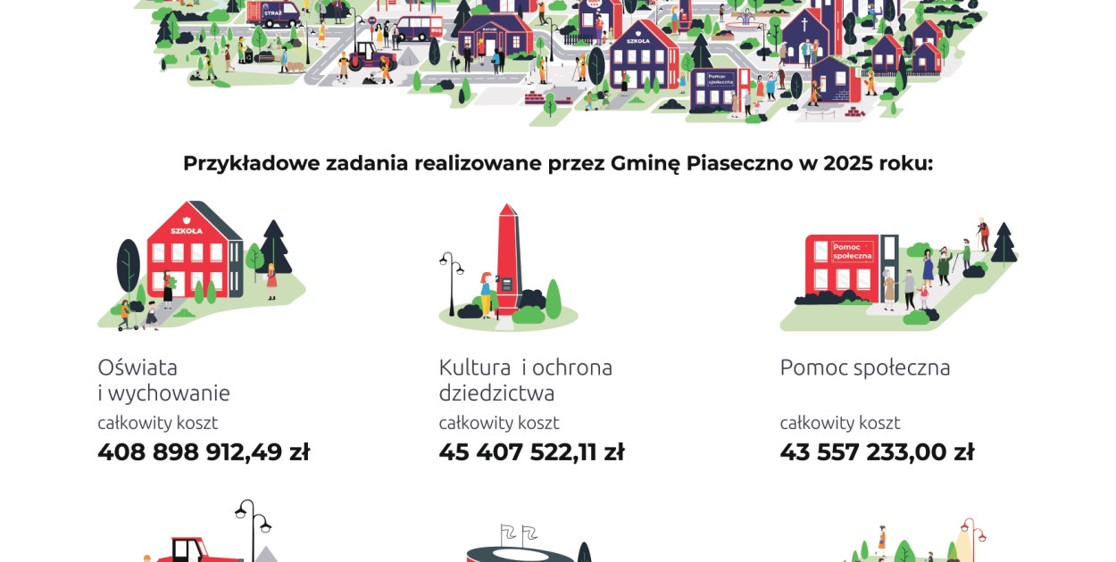 Zgodnie z nowymi regulacjami 7% od dochodu mieszkańców, wykazanego w PIT, który rozliczamy w Urzędzie Skarbowym w Piasecznie, wraca do gminy i w prosty sposób przekłada się na realizację potrzebnych usług i inwestycji. W jaki sposób gmina wydaje pieniądze, które dzięki Twojemu podatkowi trafiają do budżetu możesz sprawdzić za pomocą specjalnego narzędzia na stronie internetowej: nacoidamojepieniadze.pl/budzet-gminy/piaseczno/2025.