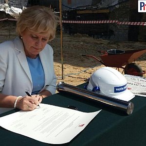 PIASECZNO Właśnie trwa uroczystość wmurowania aktu erekcyjnego pod budowę hali sportowej przy piaseczyńskim liceum. Ta od lat oczekiwana inwestycja zostanie ukończona jesienią przyszłego roku.