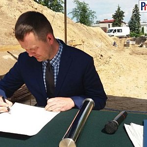 Skomentuj Wmurowanie aktu erekcyjnego pod budowę hali sportowej przy liceum