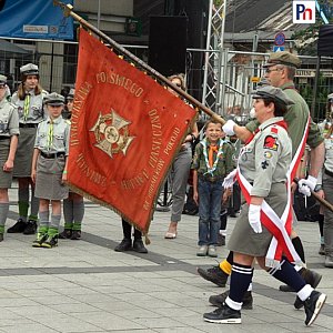 - Jestem tą, która ponad 60 lat temu założyła po raz pierwszy mundurek harcerski i była jedną z pierwszych harcerek na terenie Piaseczna - powiedziała harcmistrzyni Elżbieta Witkoś-Misiak przewodnicząca komisji historycznej i była komendantka Hufca ZHP Piaseczno, reprezentująca jednocześnie fundatorów sztandaru. - Działo się dużo. Miałam możliwość spotkania się z rówieśnikami, wspólnie działać, śpiewać i przeżywać różne niezwykle ciekawe momenty. Na swej drodze spotkałam ludzi, którzy mi zaimponowali. W ciągu tych 60 lat przez Hufiec w Piasecznie przewinęło się ponad 600 instruktorów. Niestety, wielu z nich odeszło na wieczną wartę, ale nie zapomnimy ich i ich działań na rzecz innych. Obecnym pokoleniom przekazujemy album "60 lat Hufca Piaseczno".