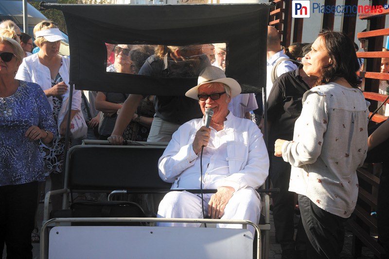 Otwarcie nowego miejsca było również znakomitą okazją do podsumowania pracy przy umieszczaniu rzeźb Józefa Wilkonia na terenie Piaseczna. Stopniowo, od początku roku, zaczęły się one pojawiać w różnych miejscach - na rynku, w parku czy w fontannie na Skwerze Kisiela. - Ich szlak będzie budował tożsamość miasta, przyciągał ludzi spoza niego i stanie się, razem z neonem Przystanku Kultura, naszą cechą charakterystyczną i czymś z czego będziemy dumni - wyraził nadzieję Daniel Putkiewicz. - Przyznam, że kiedy przyjechała pierwsza rzeźba, bałem się ją zobaczyć. Pamiętamy jak dużą popularnością cieszyły się drewniane rzeźby pana Józefa na rynku. W przypadku odlewów chcieliśmy, z jednej strony, żeby były jak najbardziej trwałe, a z drugiej - przyjemne w dotyku. Są wspaniałe, są naturalne i wierzę, że będą nas cieszyły przez długie lata.Następnie zabrał głos już sam artysta, który nie ukrywał tego, że był bardzo wzruszony. - Stało się coś ważnego w moim życiu - stwierdził. - W Piasecznie mieszkam od kilkudziesięciu lat i podzieliłem się z państwem moimi rzeźbami. Miałem trochę pietra, bo drewno ma to do siebie, że choć jest miłe w dotyku, to jest nietrwałe. W związku z tym powstały rzeźby w metalu. Próbowaliśmy z Waldkiem Górnickim (odlewnikiem - przyp. red.) je pomalować, ale dostrzegliśmy, że jest to pozbawione sensu i cały wysiłek włożyliśmy w to, żeby każdy myślał, że te rzeźby powstały w metalu. Podkreśliliśmy ich metaliczność i nic mi teraz nie grozi.Spacer i wieczorynka