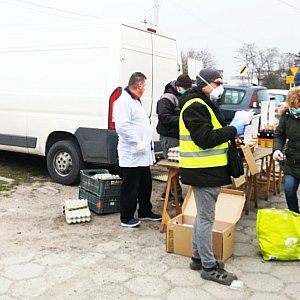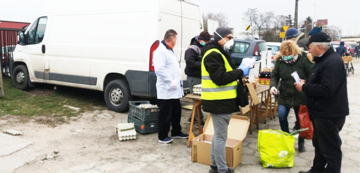 - Targowisko wciąż działa aby zabezpieczać podstawowe potrzeby mieszkańców, ale zostało dostosowane do zaleceń. Udostępniono 40 stanowisk, bezpiecznie oddalonych od siebie, sprzedający muszą mieć maseczki i rękawiczki, targowisko zostało ogrodzone, maksymalna liczba klientów robiących zakupy wynosi 90 jednocześnie. Już w piątek ruch ten był kontrolowany przez pracownika urzędu, który jednocześnie przekazywał kupującym maseczki.