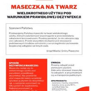 - W piątek urząd rozpoczął akcję przekazywania maseczek ochronnych wielokrotnego użytku bezpośrednio mieszkańcom. Pierwsze 800 maseczek wraz z instrukcją rozdanych zostało osobom odwiedzającym targowisko miejskie.