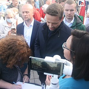 - Bardzo się cieszę, że znowu jestem u was, najczęściej rowerem przez las - przywitał się, korzystając z megafonu, Rafał Trzaskowski. - Energia jest niesamowita. Zaczęliśmy zbierać dzisiaj rano podpisy i bije przez cały czas licznik w całej Polsce. Ta energia jest absolutnie konieczna do tego żeby wygrać te wybory i do tego żeby zmienić Polskę. Dziękuję wam bardzo!