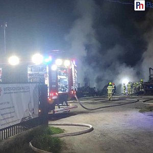 Strażacy gasili pożar do godziny 6 rano. Nie sposób było uratować płonącego drewna, ale udało się ocalić jedną wiatę i samochód.