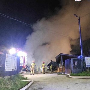 Pożar pochłonął skład z drewnem