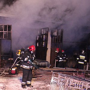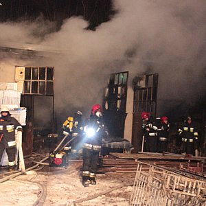 Pożar wybuchł w budynku warsztatowo-magazynowym, w którym były przechowywane materiały budowlane.