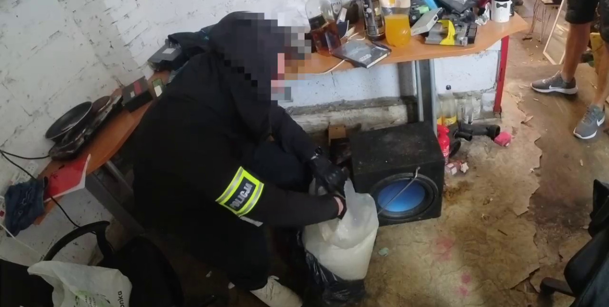 Na miejsce wezwano przewodnika z psem tropiącym, który pomógł ujawnić ukryte substancje odurzające. W warsztacie oraz w miejscach zamieszkania zatrzymanych zabezpieczono duże ilości mefedronu i marihuany. Policjanci znaleźli również substancje chemiczne mogące służyć do produkcji narkotyków, które zostaną poddane dalszym badaniom.