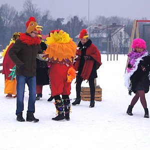 Tym razem publiczność przednio się bawiła oglądając spektakl "Miała babka pstrą kokoszkę" na podstawie bajki Janiny Porazińskiej. W sumie sztukę odegrało ponad 20 aktorów, którzy nie tylko mówili, ale i tańczyli do rytmu znanych przebojów disco polo. Tytułowa babka zakończyła widowisko pedagogiczny morałem: "Widzisz, dziadku, jak to źle pić gorzałkę! Gdyby lisek jej się nie napił, toby się nie utopił".Po zmroku pokaz "tańca ognia" z pochodniami dali miejscowi strażacy. Dochód z festynu zostanie przeznaczony na zakup mobilnego miasteczka ruchu drogowego, z którego korzystać będą przy nauce jazdy na rowerze uczniowie szkoły w Uwielinach.Piotr Chmielewski