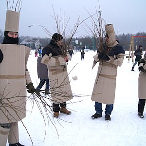 Przez pierwsze dwie godziny wydarzenia uczestnicy zjedli prawie 80 litrów buchającej parą grochówki. Dwa razy do roku, na uwielińskie imprezy, pichcą ją panowie Paweł z Ustanowa i Andrzej z Uwielin. - Zgłosiliśmy się do tego zadania, bo gotujemy w domu, dla rodzin. Pierwszą grochówkę przygotowaliśmy metodą prób i błędów. Wyszła, jaka wyszła, czyli najlepsza w okolicy - zapraszał do skosztowania z szerokim uśmiechem pan Paweł. - Podstawowa rzecz: trzeba rano wstać, żeby obrać 10 kg ziemniaków, pokroić 10 kg kiełbasy i 5 kg boczku - zdradzał tajniki przepisu.Kto nie gustował w grochówce miał do wyboru rozmaite słodkości. W sobotę ogłoszono wyniki konkursu "szarlotkowy zawrót głowy", do którego przystąpiło aż 35 wielbicieli pachnącego cynamonem ciasta. Na 3. miejsce zasłużyła Urszula Wilczyńska, oczko wyżej znalazł się wypiek Doroty Gros, a tytuł dla najlepszej szarlotki odebrała Aneta Glegoła. Przepis na jej "Uwielotkę" rozdano zebranym.