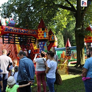 Właściciele przedszkola "Nutka" Justyna Glica i Michał Otręba mieli powód do radości. Impreza na 15-lecie cieszyła się bardzo dużym zainteresowaniem" loading="lazy">Piękna pogoda i liczne atrakcje sprawiły, że na placu przy kościele, ku zadowoleniu organizatorów imprezy pojawiły się prawdziwe tłumy. Dmuchane zamki, lody, gofry, wata cukrowa, stoiska i bogaty program artystyczny prezentowany na scenie sprawiły, że czas płynął szybko i przyjemnie.