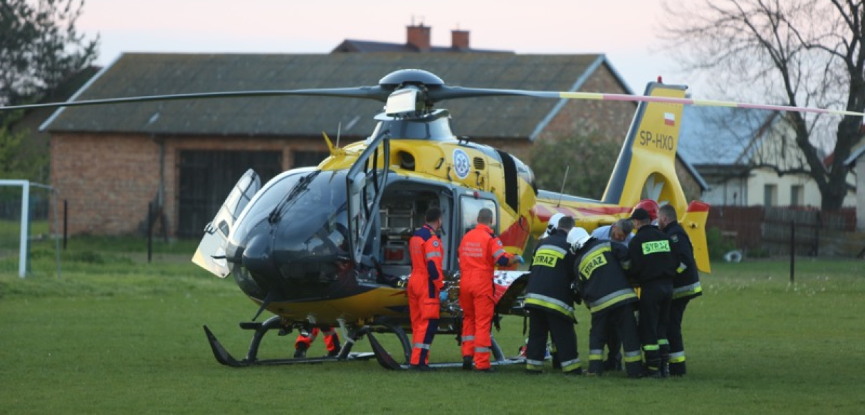 Śmigłowiec Lotniczego Pogotowia Ratunkowego zabrał poszkodowanego do szpitala