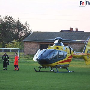 Nieoficjalnie dowiedzieliśmy się, że służby ratunkowe zostały powiadomione przez dziecko. W tej chwili z boiska sprzed Liceum Ogólnokształcącego Zespołu Szkół im Szarych Szeregów w Tarczynie wystartował śmigłowiec pogotowia ratunkowego, który przetransportuje rannego do szpitala.Adam Braciszewski