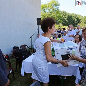 Głównym punktem pikniku było rozstrzygnięcie konkursu na najsmaczniejszą szarlotkę" loading="lazy">Sołtys podziękował także sponsorom, dzięki którym była możliwa organizacja pikniku.Ważnym punktem imprezy było rozstrzygnięcie konkursu na najlepszą szarlotkę, do którego zgłoszono siedem ciast. Jury stanęło przed trudnym zadaniem wyłonienia najsmaczniejszego wypieku. Po burzliwych obradach przyznano pierwsze trzy miejsca. Zwyciężyła przepyszna szarlotka Krystyny Prus, za nią uplasowały się wypieki Marzeny Mastalerz oraz Janiny Prus.