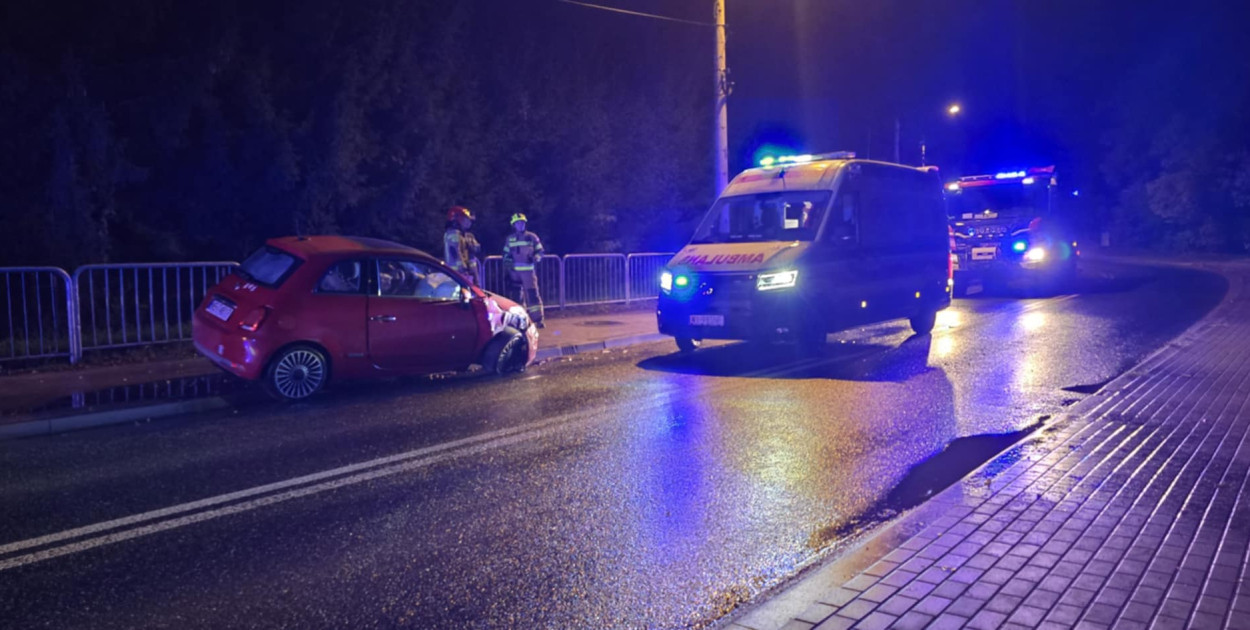 Młody mężczyzna jadący fiatem 500 zjechał z jezdni na chodnik, a następnie uderzył w słup. Na miejsce przyjechała straż pożarna i karetka pogotowia. Poszkodowany kierowca został zabrany do szpitala. Przyczyny i okoliczności kolizji ustali policja.