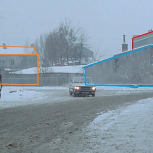 Na dalszym planie można dostrzec dwukondygnacyjną kamienicę przy ulicy Żabiej (zaznaczona na pomarańczowo). Ten budynek także został rozebrany przed końcem lat 70., a więc filmowa klisza utrwaliła prawdopodobnie jego ostatnie chwile. Dzisiaj na tym miejscu znajduje się parking na tyłach Banku Spółdzielczego.