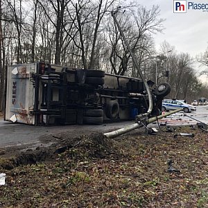 Ciężarówka staranowała sygnalizator świetlny i przewróciła się na jezdnię [AKTUALIZACJA]
