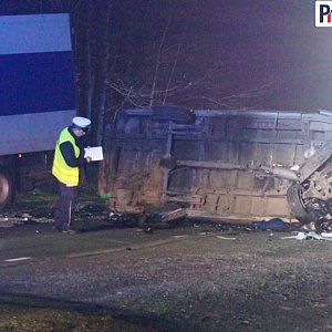 29-letni kierowca jadący mercedesem z niewyjaśnionych przyczyn zjechał na przeciwległy pas ruchu i uderzył w samochód ciężarowy marki Scania. Kierowca auta dostawczego zginął na miejscy, 60-latek jadący scanią został przewieziony do szpitala.