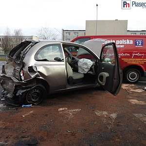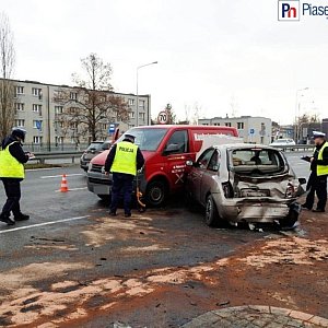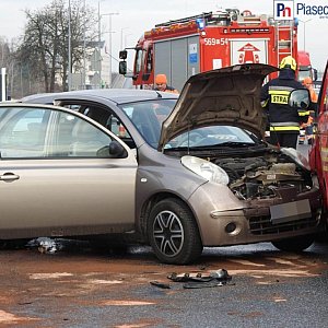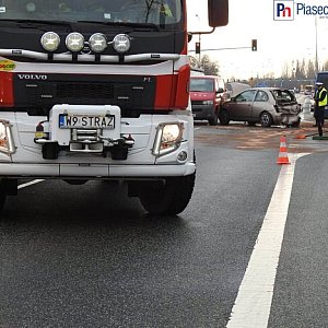 Cztery samochody rozbite i trzy osoby poszkodowane. Na miejsce dojechały karetki pogotowia, strażacy zabezpieczyli płyny, które wyciekły z rozbitych aut na jezdnię. Jak informuje Komenda Powiatowa Policji w Piasecznie , ruch w stronę Piaseczna wciąż prowadzony jest jednym pasem.Ze wstepnych ustaleń policjantów wynika, że 86-letni kierujący mercedesem najechał na tył pojazdu marki nissan, który ustępował przejazdu włączającemu się do ruchu vw transporter. W wyniku zderzenia vw zmienił swoje położenie uderzając w opla, za kierownicą którego siedział 40-latek. Uczestnicy zdarzenia byli trzeźwi. 76-latek z nissana został przewieziony do szpitala.