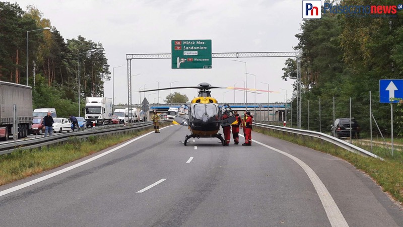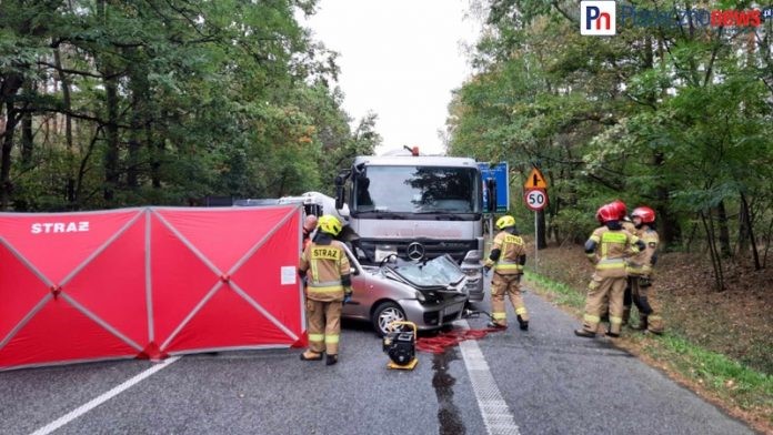Na miejscu jest 5 zastępów straży pożarnej, pogotowie i śmigłowiec LPR. Krajowa 50 jest całkowicie zablokowana.- Kobieta w wieku ok. 60 lat po zderzeniu z ciężarówką przewożącą cement została zakleszczona w rozbitym aucie - informuje mł. bryg. Łukasz Darmofalski z Komendy Powiatowej Państwowej Straży Pożarnej w Piasecznie. - Kierująca została oswobodzona z samochodu i przekazana zespołowi pogotowia ratunkowego. Niestety lekarz potwierdził zgon.