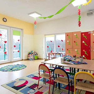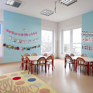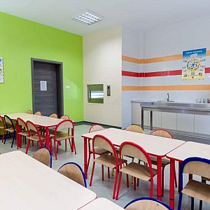 Wzorowe warunki lokalowe, nowoczesne, przestronne oraz doskonale wyposażone sale dydaktyczne z dużymi bezpiecznymi oknami zapewniającymi nieograniczony dostęp do światła dziennego, łazienki w każdej sali przystosowane do wieku dzieci, odrębne miejsce do spożywania posiłków- jadalnie dla dzieci, do której za pośrednictwem windy żywieniowej prosto z własnej kuchni będą trafiać przygotowywane przez Szefa kuchni zdrowe i zbilansowane posiłki.