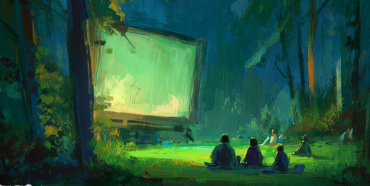 🎥 Kino plenerowe – wieczorne seanse filmowe pod gołym niebem, w klimatycznej, leśnej scenerii.