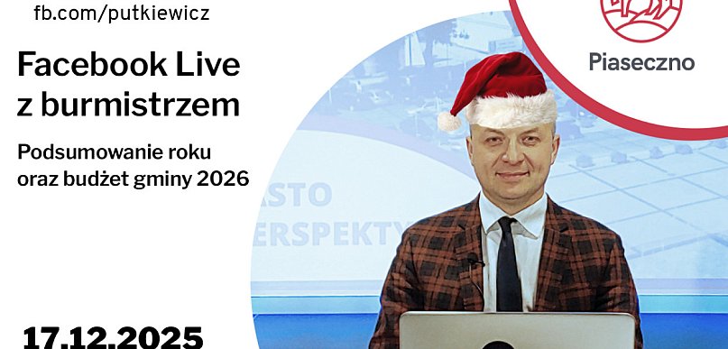 PIASECZNO Burmistrz Piaseczna Daniel Putkiewicz zaprasza na ostatnie spotkanie online w 2025 roku w środę 17 grudnia o godzinie 17.00. Tematem będzie podsumowanie roku oraz informacja o planowanych w 2026 r. inwestycjach.